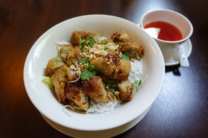 spring rolls on rice noodles