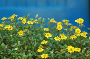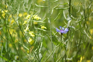 fleurs jaunes, porte bleue