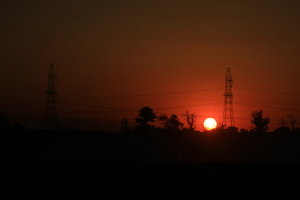 électricité au coucher du soleil