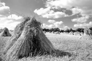 champ de chaume et balles de paille