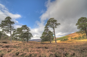 bruyère écossaise et pins