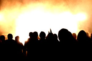 Crowd in front of stage light