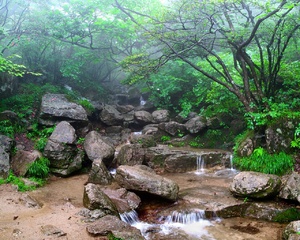 Mountain creek in a mist