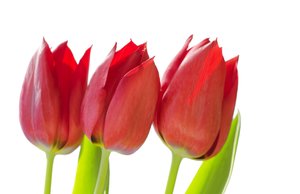 Three red tulips