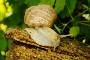 snail on the tree trunk
