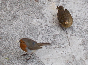 rouge-gorge avec poussin (juvinile)