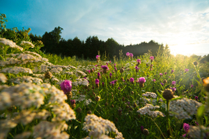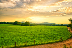 champ au coucher du soleil