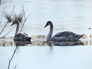 cygnes sur lac glacé