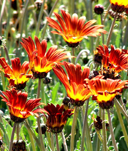 marguerites flamboyantes, coloré, coloré, couleurs, couleurs, décoratif, décoration, feuillage, feuilles, fleurs, floral, flore, jaune, la nature, orange, plante, rouge, vert, végétaux