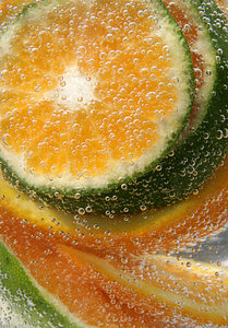 agrumes, bulle, bulles, en bonne santé, froid, fruit, fruits, l'eau, orange, vert