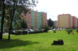 blocs modernes, ensoleillement, herbe