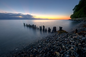 brise-lames - hdr, Agé de, bois, ciel, côte, des nuages, des pierres, en bois, pierre