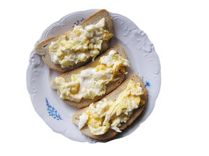 oeufs brouillés sur du pain