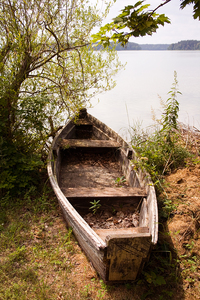 vieux bateau, Agé de, Lac, abandonné, bateau, bateau, bateaux, en bois, feuilles, l'eau, naviguer, pourriture, ruine, rustique