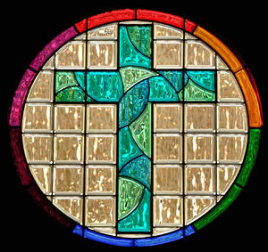 croix en verre cerclée de couleur