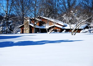 chalet dans la neige et les bois
