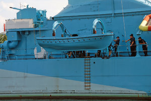 canot de sauvetage sur un vieux navire de guerre polonais