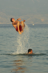 jeunes garçons sautant dans la mer